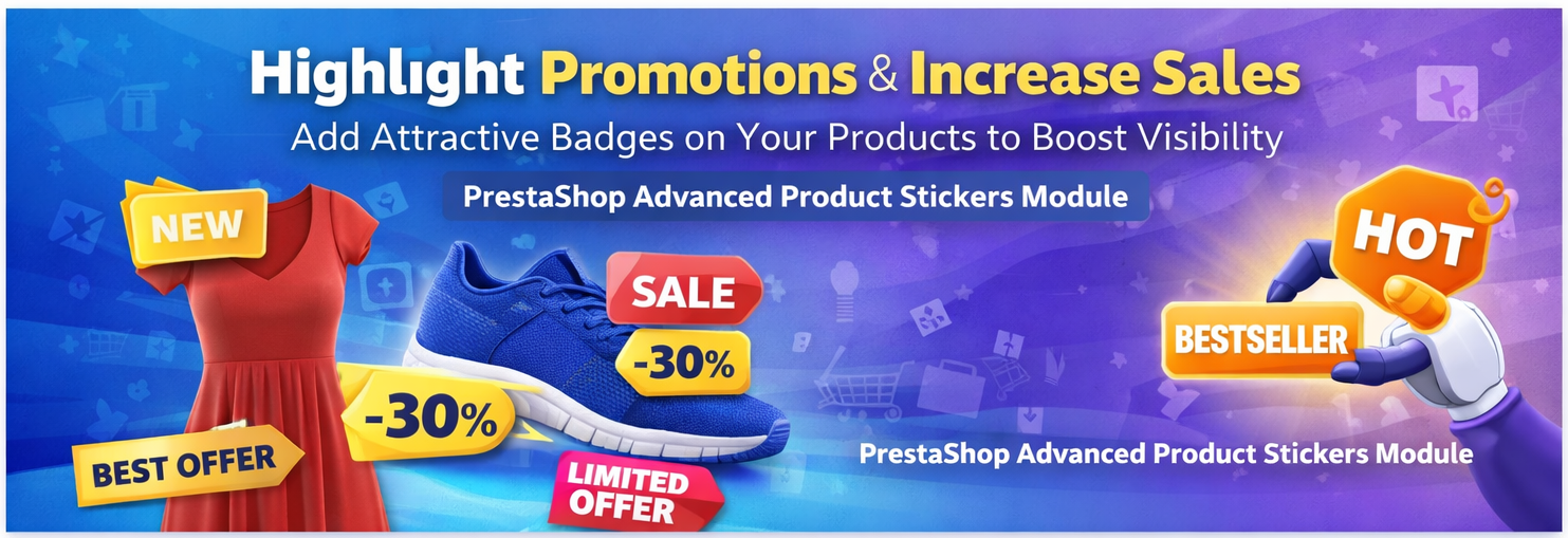 The Advanced Product Stickers & Labels PrestaShop Module enables merchants to add customizable stickers and labels on product images to highlight promotions, discounts, new arrivals, and other important product information. (Sathi)