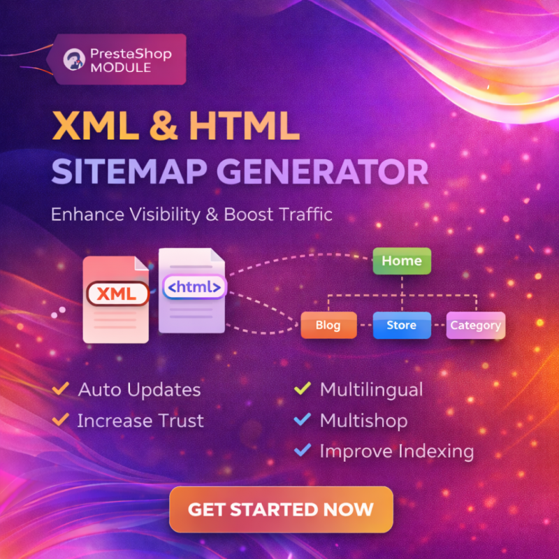 Boost your website's visibility with an advanced XML & HTML sitemap generator. Auto-update multilingual and multishop sitemaps to improve indexing and attract more traffic.