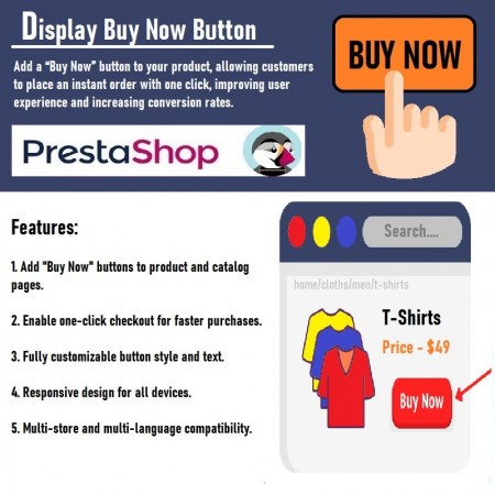 This module allows merchants to add Buy Now buttons to their product and catalog listing pages. With this feature, customers can place their orders with just one click, leading to faster and more seamless transactions by bypassing the traditional cart process. The module improves user experience and increases conversion rates by simplifying the purchase process.
