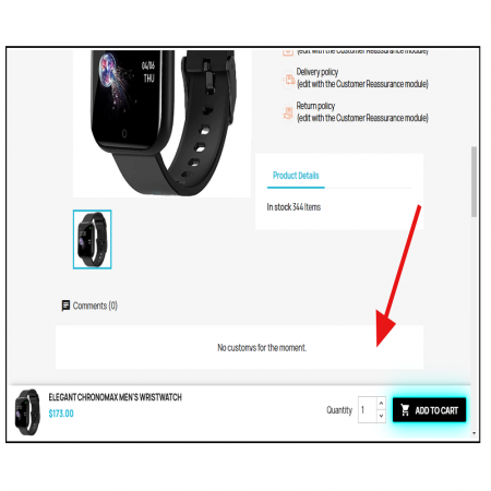 The Sticky Add to Cart Bar module ensures that the “Add to Cart” button remains visible as the user scrolls down the product page. This helps improve conversions by providing easy access to shopping options without the need to scroll back up.